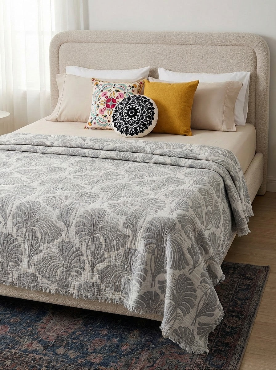 Nature's Hug Muslin Quilt / Comforter / Bedspread Gray