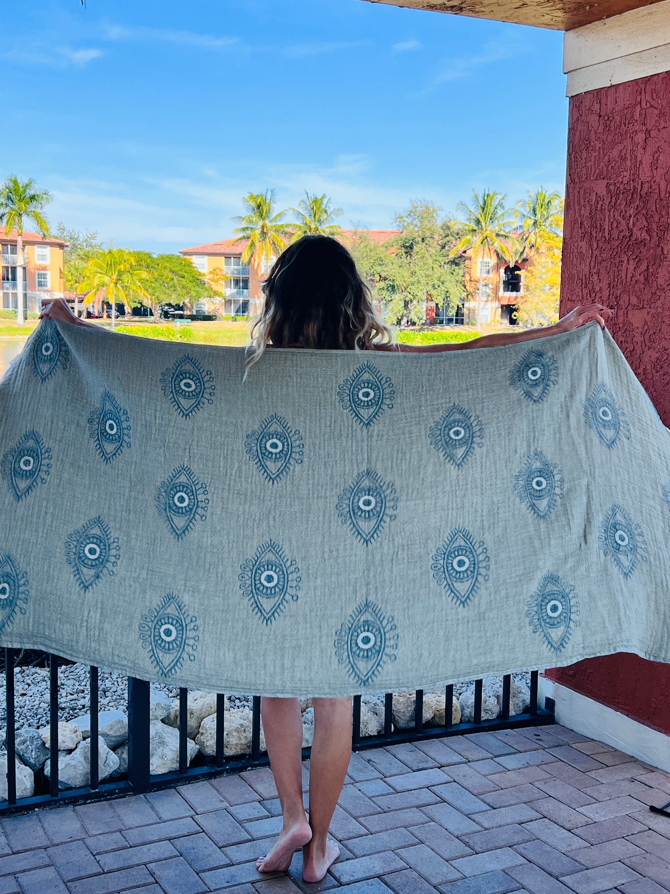 The artisan style weave with boho eye motifs  gives it a unique, modern look you’ll love to use and display. It dries quickly and becomes even softer with every wash.