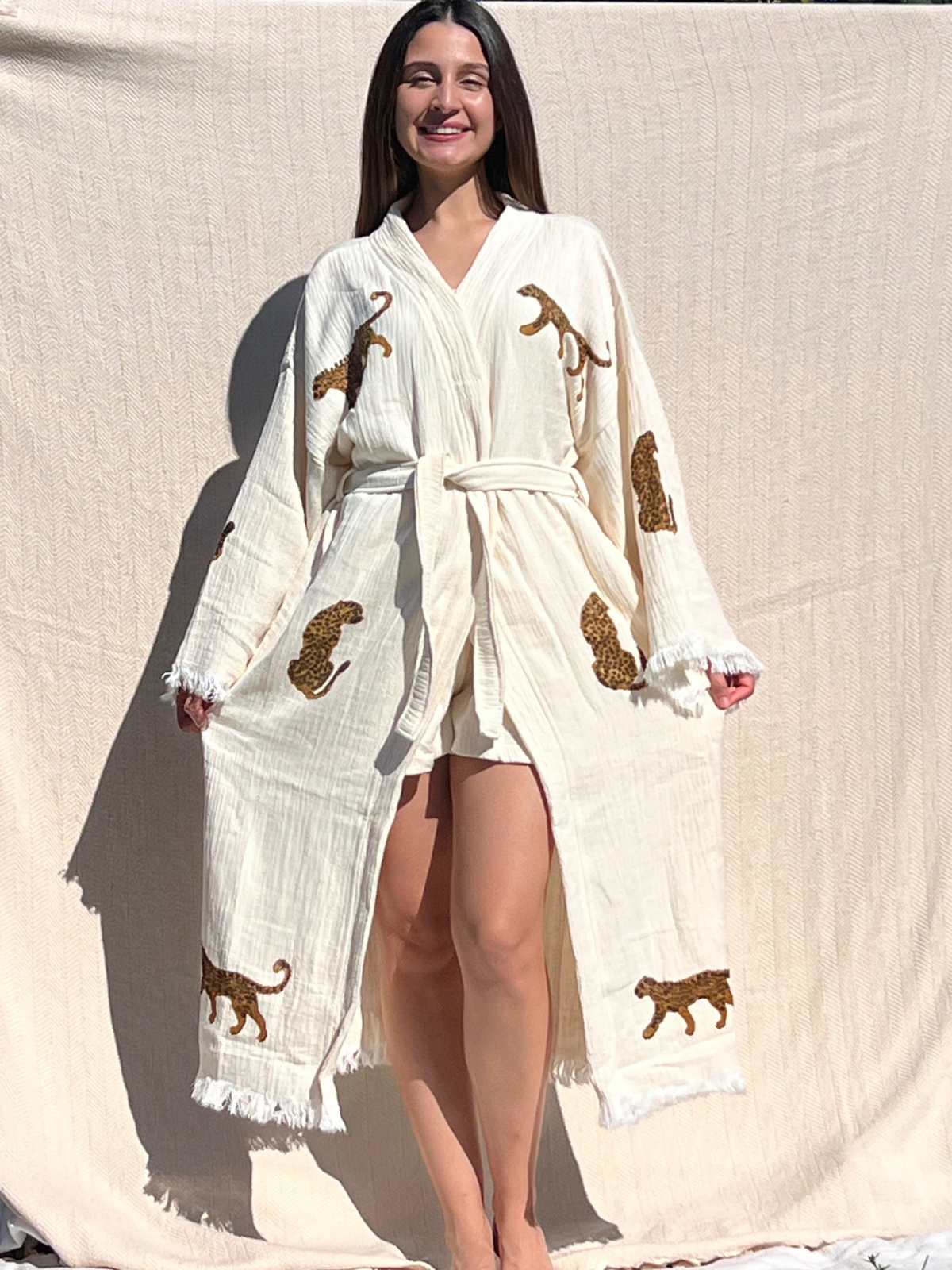 Super soft, fluffy and breathable kimono/robes are made of hand woven muslin fabric and prints are handcrafted with natural dyes, making the boho kimono gentle on your skin and the environment.